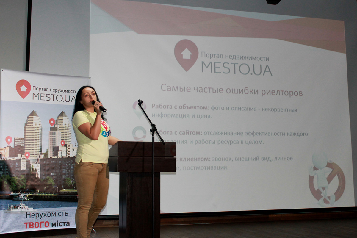 Директор компании «Место Холдинг» Оксана Кисиль представила публике пятиминутный ролик, вызвавший неподдельный интерес и участие присутствующих. Дело в том, что компания заказала небольшое журналистское расследование, в котором у обычных людей выясняли, как они относятся к профессии риелтора и какими основными ошибками этих специалистов недовольны больше всего. Опрос проводили в Виннице, однако представили мнение большинства возрастных категорий реципиентов, являющиеся основными потребителями риелторской услуги. После показа ролика, Оксана остановилась на основных ошибках риелторов в вопросах пользования услугами размещения объявлений на различных специализированных порталах по недвижимости.