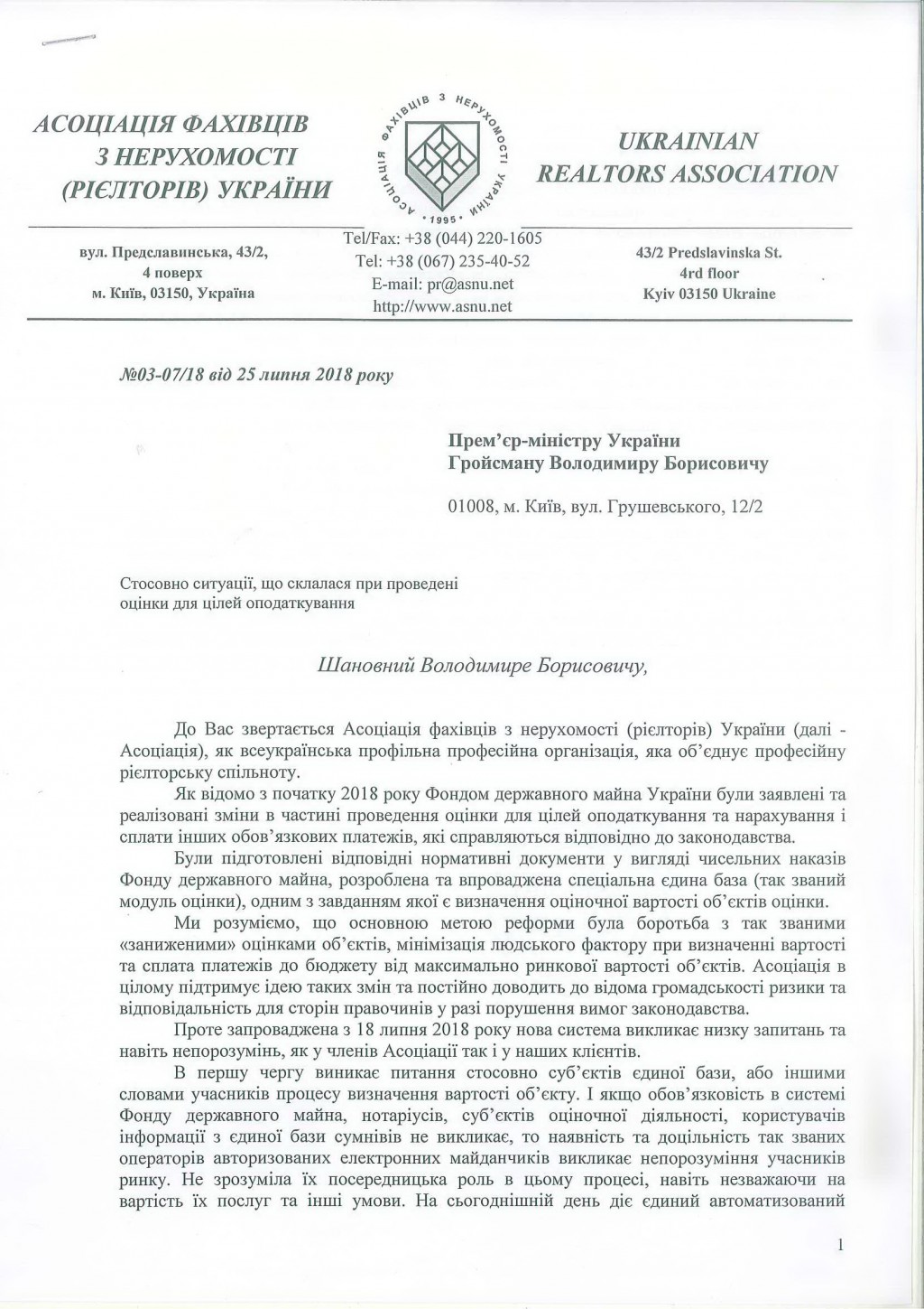 Так, было подготовлено и отправлено официальное открытое письмо Премьер-министру Украины Владимиру Гройсману. В нем АСНУ выступает с предложением о создании рабочей группы по усовершенствованию новых правил с учетом реальной картины украинского рынка недвижимости.