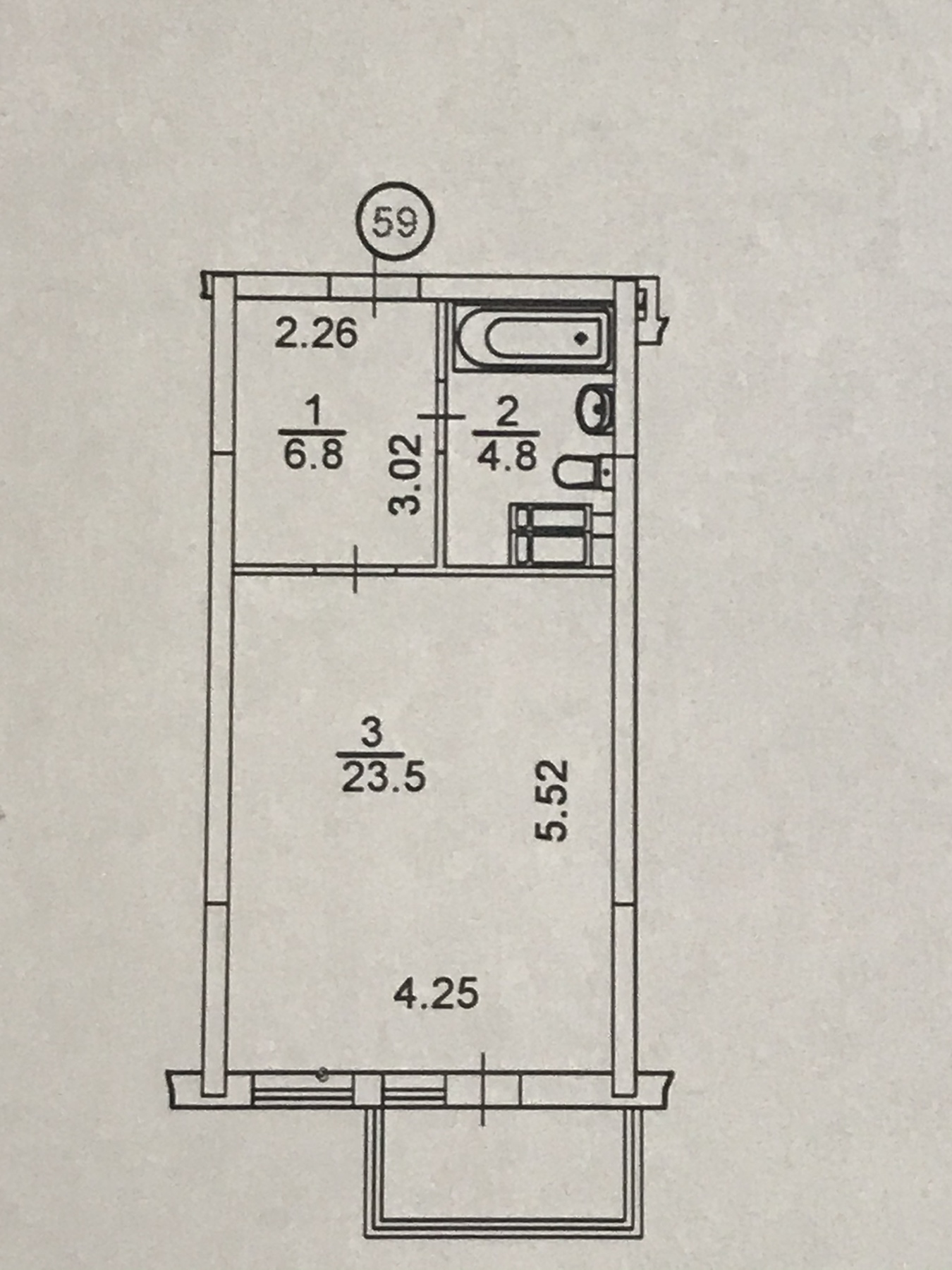 Санвузол: 4,8 м2