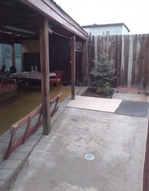 Двір окремий в тротуарній плитці є мангал, заїзд для авто