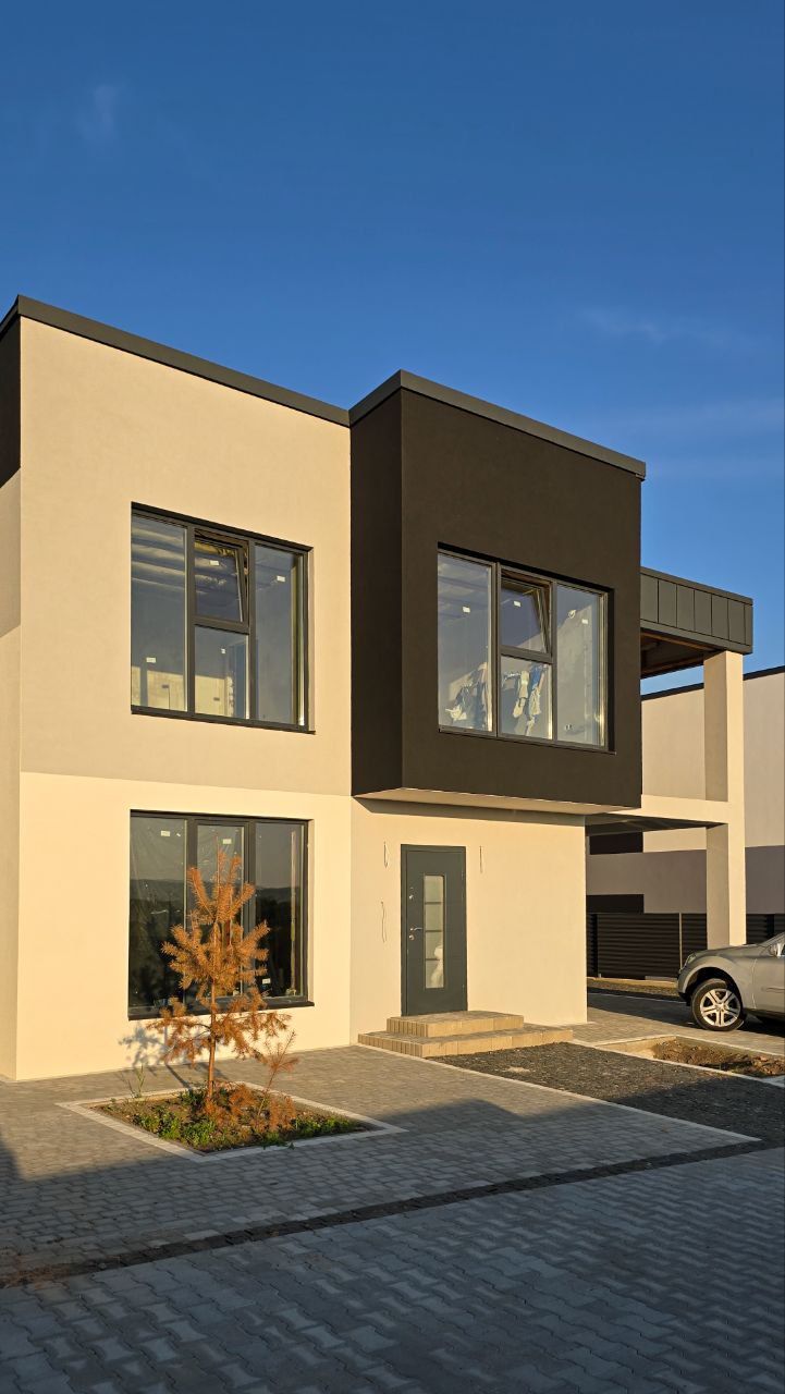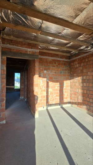 Продається новий 4-кімнатний будинок поблизу Чернівців. Розташований у затишному місці на початку села, всього 4 км від ТЦ Майдан. Сучасний каркасно-монолітний тип будівництва з цегли та товщиною стіни у 1.5 цеглини. Утеплення стін: 100 мм пінопласт та криші мінватою 250 мм. Перекриття між 1-м та 2-м поверхом — залізобетон. Загальна площа 131.5 м² плюс 35 м² тераса. Крите паркомісце. Ділянка 4.3 сотих. Рік будівництва: 2024. Стан від забудовника з виконаними важливими внутрішніми роботами.