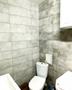Санвузол у квартири суміжний ванна та унітаз, обшитий кахлями, теплий, в санузлі є батарея опалення , квартира світла, з гарним косметичним ремонтом , всі вікна в квартирі та лоджа мпо
