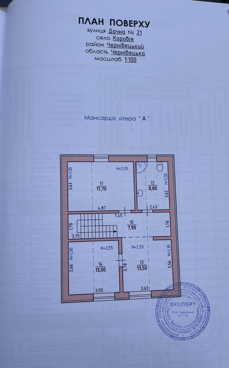 Площа будинку - 223.8 кв.м, площа земельної ділянки - 8 сотих (під будівництво житлового будинку), 1,5 поверхи (цокольний, перший та мансардні поверхи).