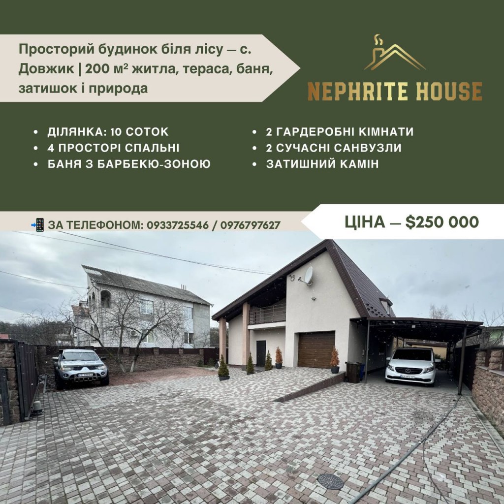 Просторий будинок біля лісу — с. Довжик | 200 м² житла, тераса, баня, затишок і природа