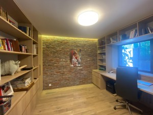 Двоповерховий будинок площею 176 кв.м, зведений у 2015 році з цегли з якісним утепленням, п’ять кімнат і два санвузли. На першому поверсі розташовані простора вітальня площею 20,5 кв.м, об'єднана з кухнею-столовою 18,5 кв.м із виходом на затишну терасу, світлий кабінет 12 кв.м, санвузол із душовою та технічне приміщення з інженерним обладнанням та сантехнікою. На другому поверсі – дві спальні по 16,5 кв.м, велика дитяча кімната 20 кв.м, творча майстерня 12 кв.м та ванна кімната. Планування продумане так, щоб кожен член родини мав власний простір.