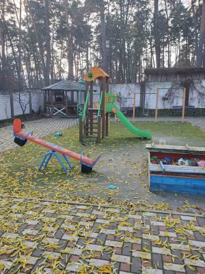 Навколо будинку гарна прибудинкова територія в тротуарній плитці, сосни, свіже повітря. Тихе місце.