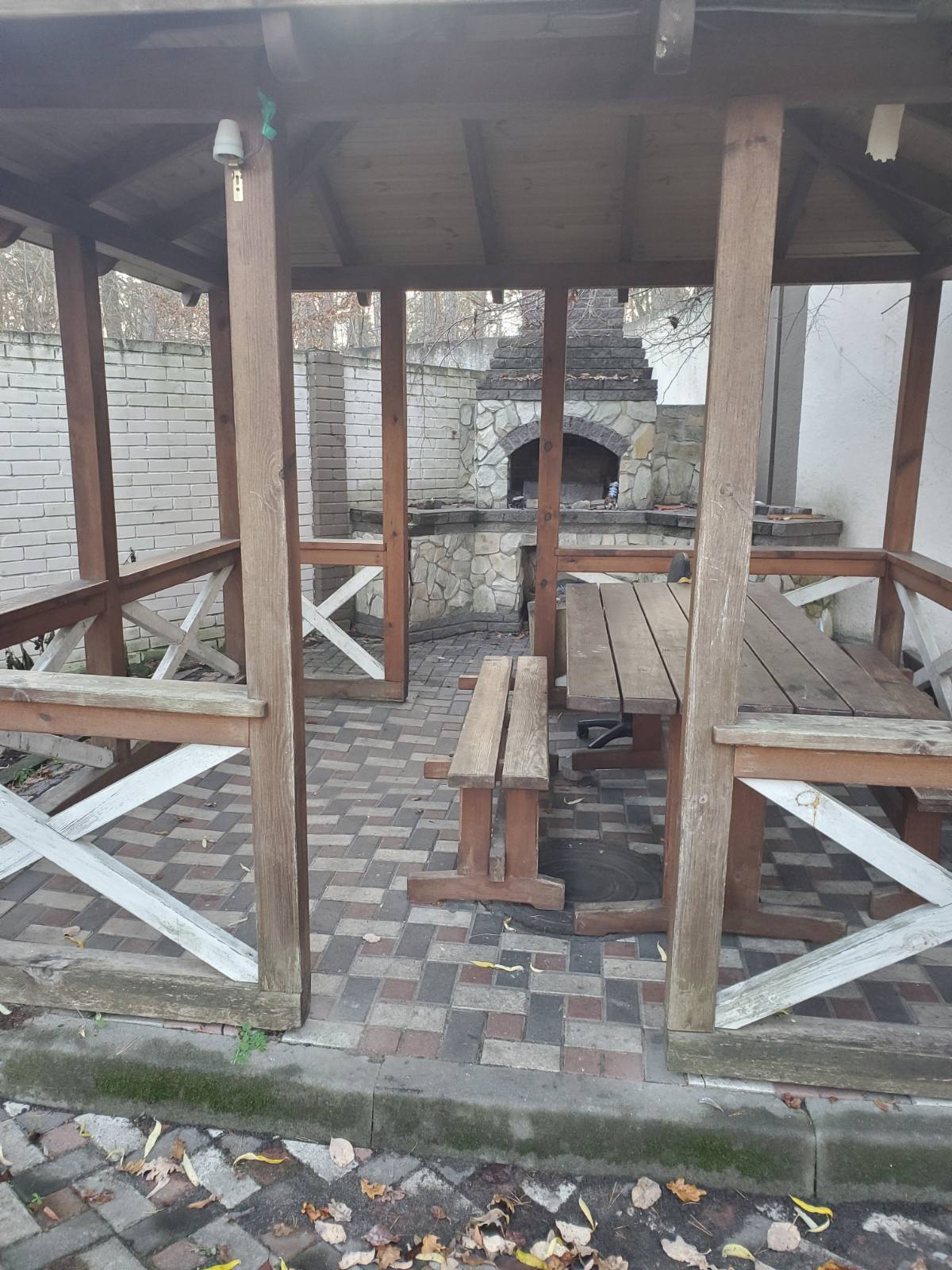 Вокруг дома красивая придомовая территория в тротуарной плитке, сосны, свежий воздух. Тихое место.