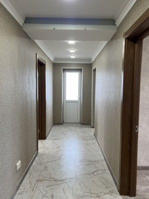 Квартира світла і затишна, двостороння. В кімнатах і коридорі оздоблення стін -шпалери, підлога – ламінат, в кухня фарбована, робоча стінка, підлога і в санвузлі плитка. Нові проводка, радіатори опалення, сантехніка, труби. Встановлені 2 кондіціонера, бойлер, броньовані двері, відеодомофон, лічильники води. Підключений Інтернет, є Wi-fi роутер.