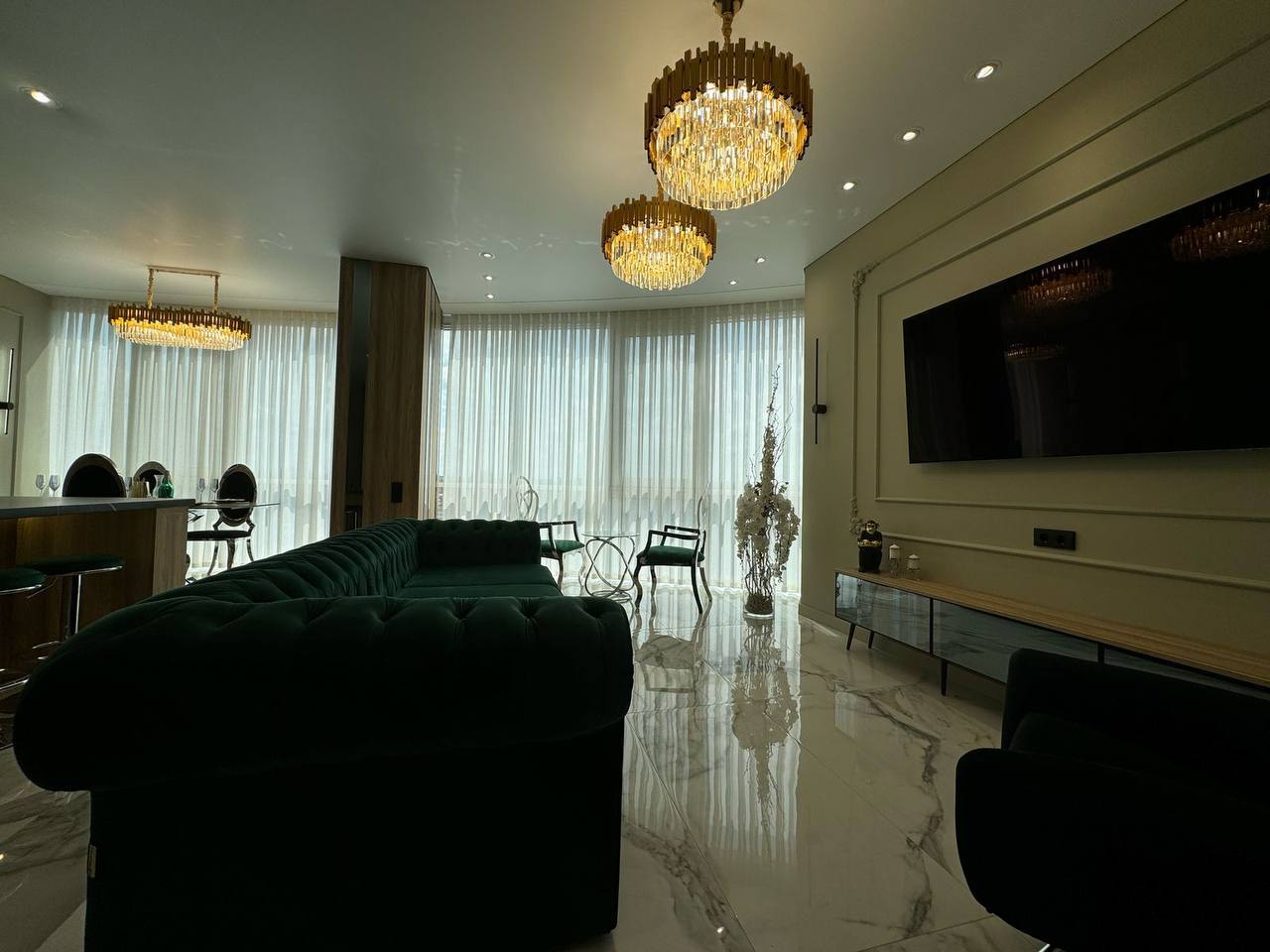 Квартира з неймовірними краєвидами, що відкриваються з панорамних вікон. Ремонт виконаний з дорогих та якісних матеріалів у світлих, спокійних тонах. Є 3 кондиціонери. Тепла підлога по всій квартирі. Квартира на електриці. У квартирі продумано все до дрібниць, починаючи з санвузла, закінчуючи просторими гардеробними. Простора кухня-вітальня дозволить приймати багато гостей. 2 окремі спальні. Залишається абсолютно все: меблі, техніка. Заходь і живи. Ця розкіш чекає на тебе.