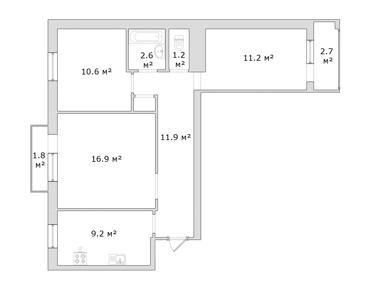 Загальна площа: 69 кв.м