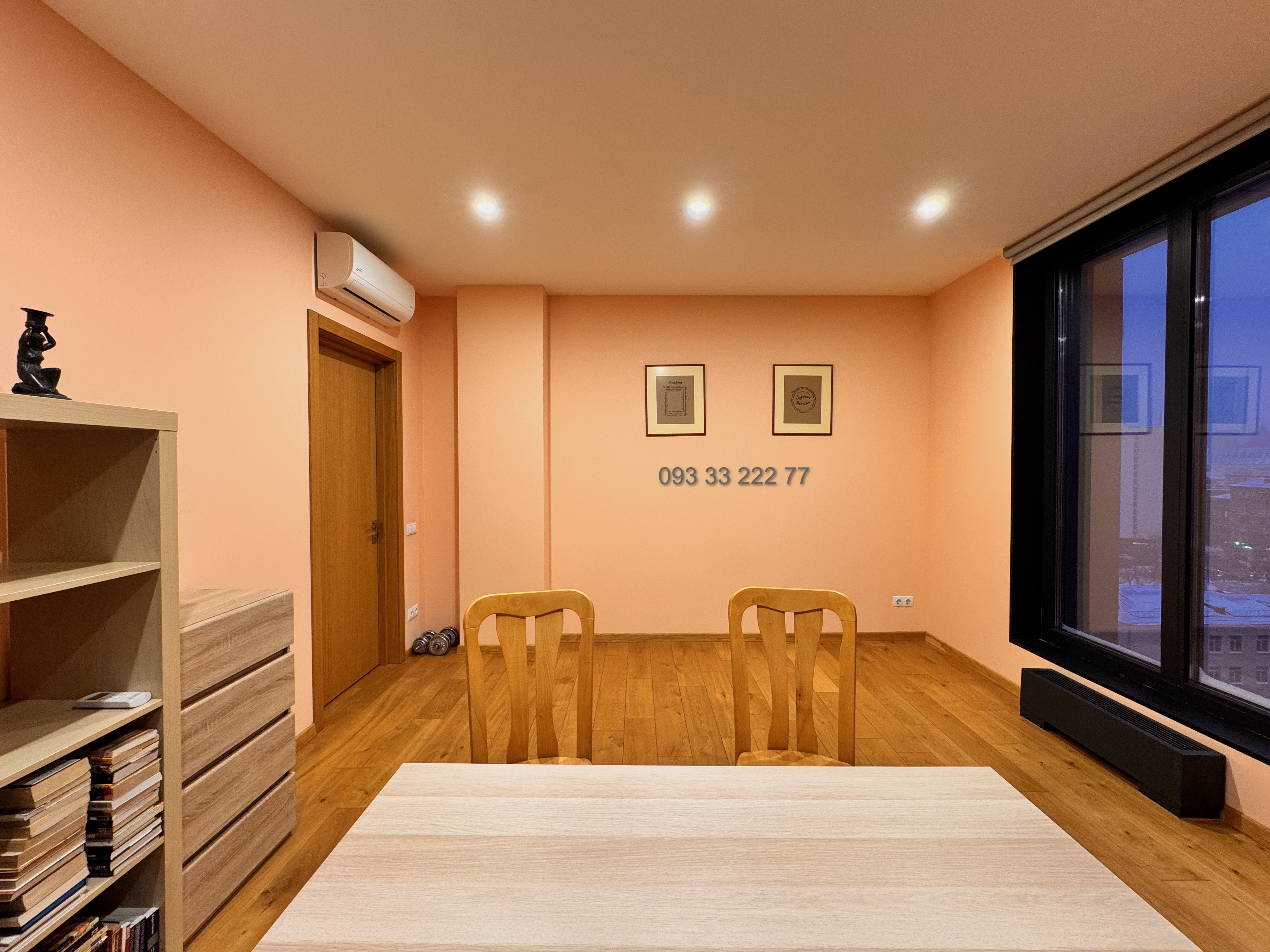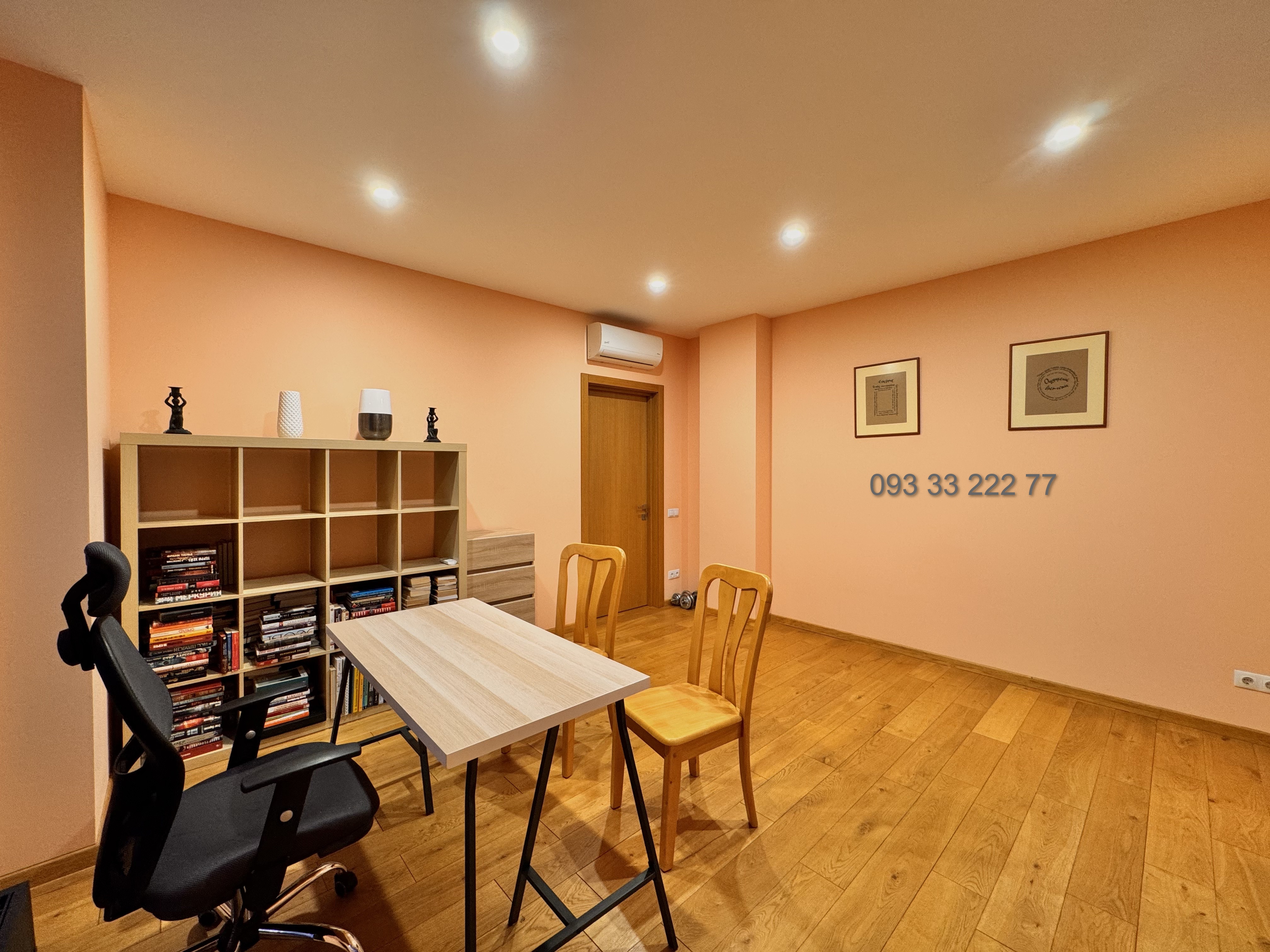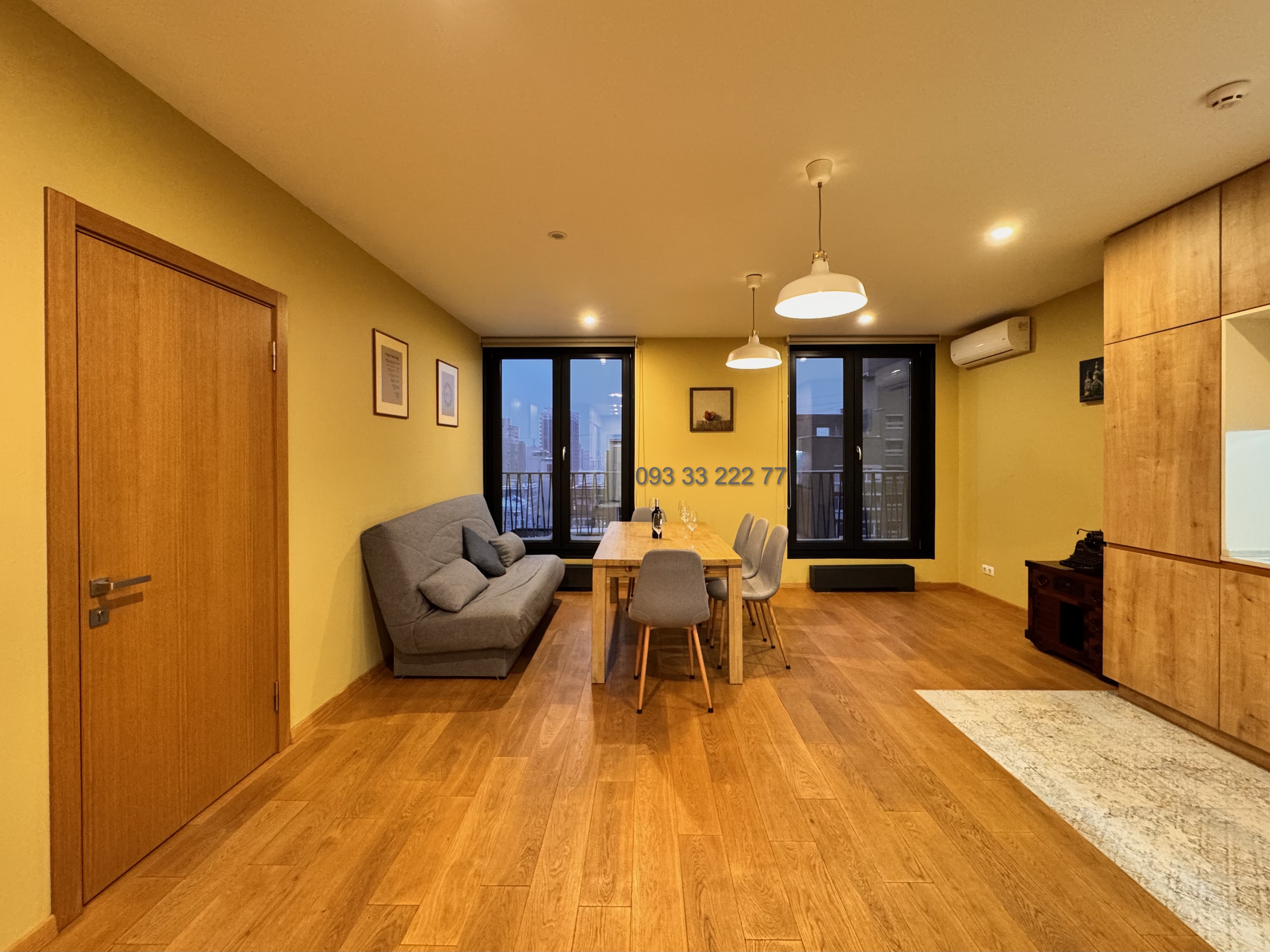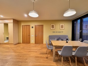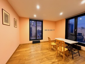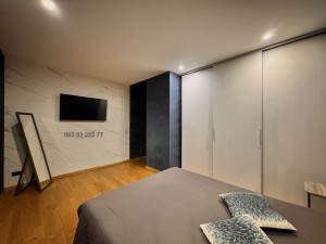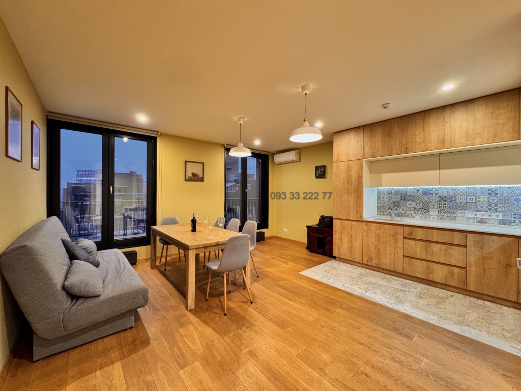 Обладнана необхідними якісними меблями та технікою для комфортного проживання: двоспальне ліжко з ортопедичним матрацом, зручний диван, робочий стіл з кріслом, варильна поверхня, духова шафа, витяжка, вбудований холодильник, плазмовий телевізор, три інверторних кондиціонера, душова кабіна, пральна та сушильна машина, бойлер, пилосмок.
