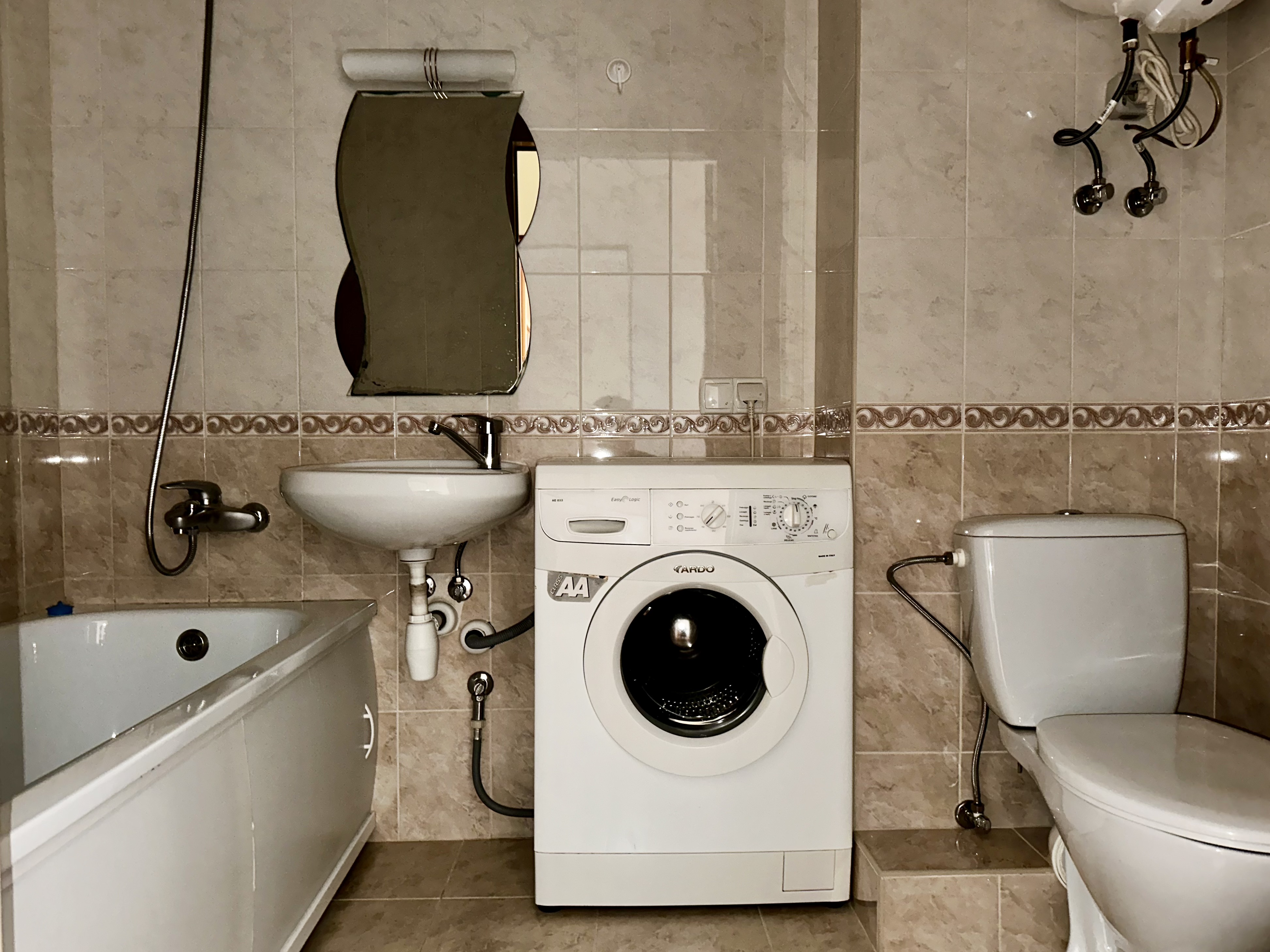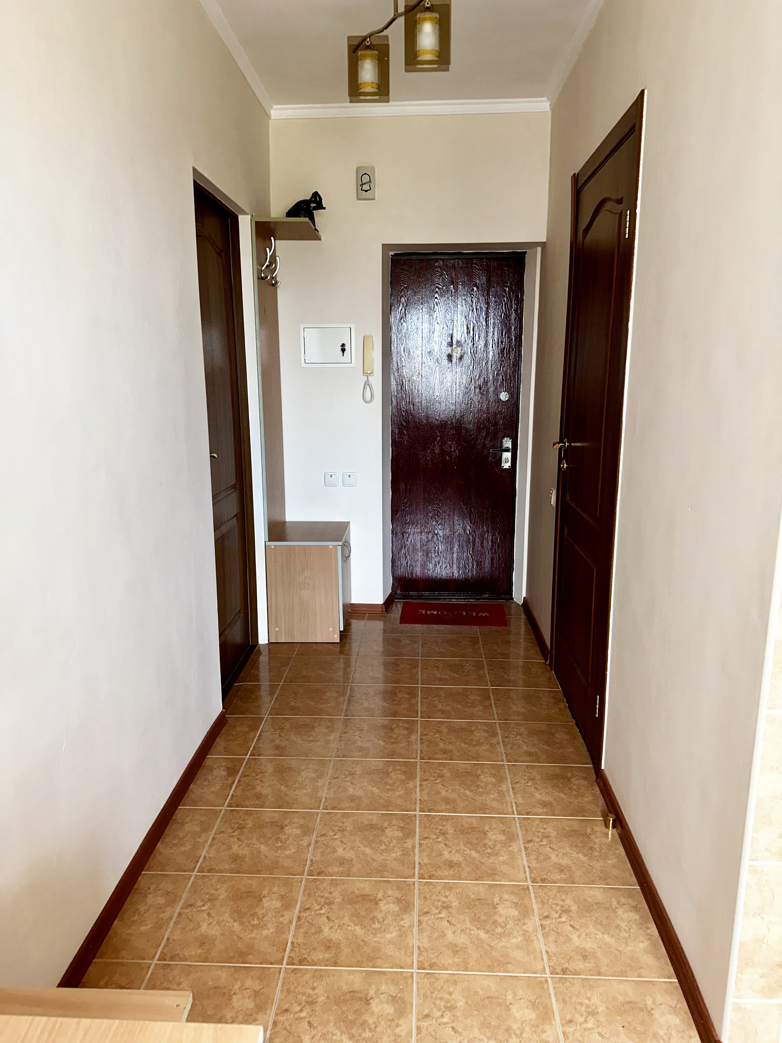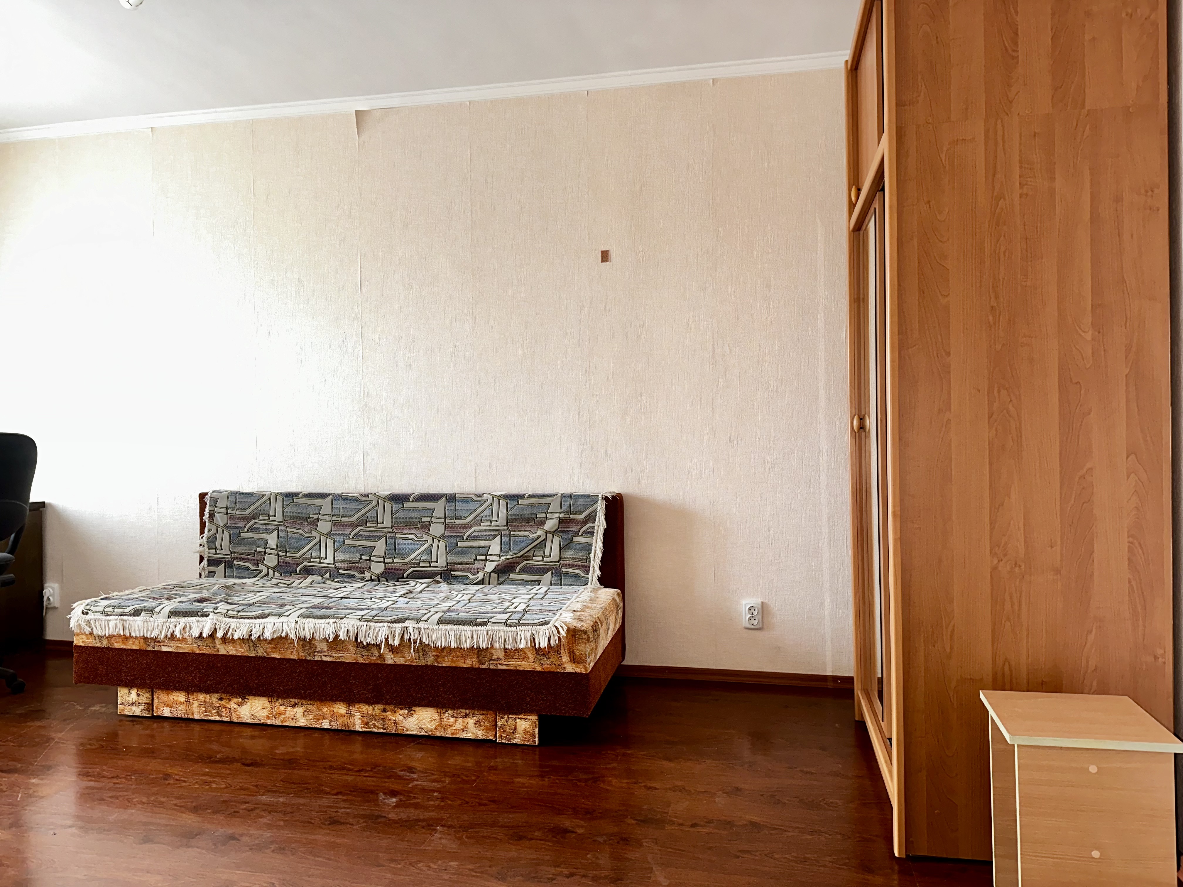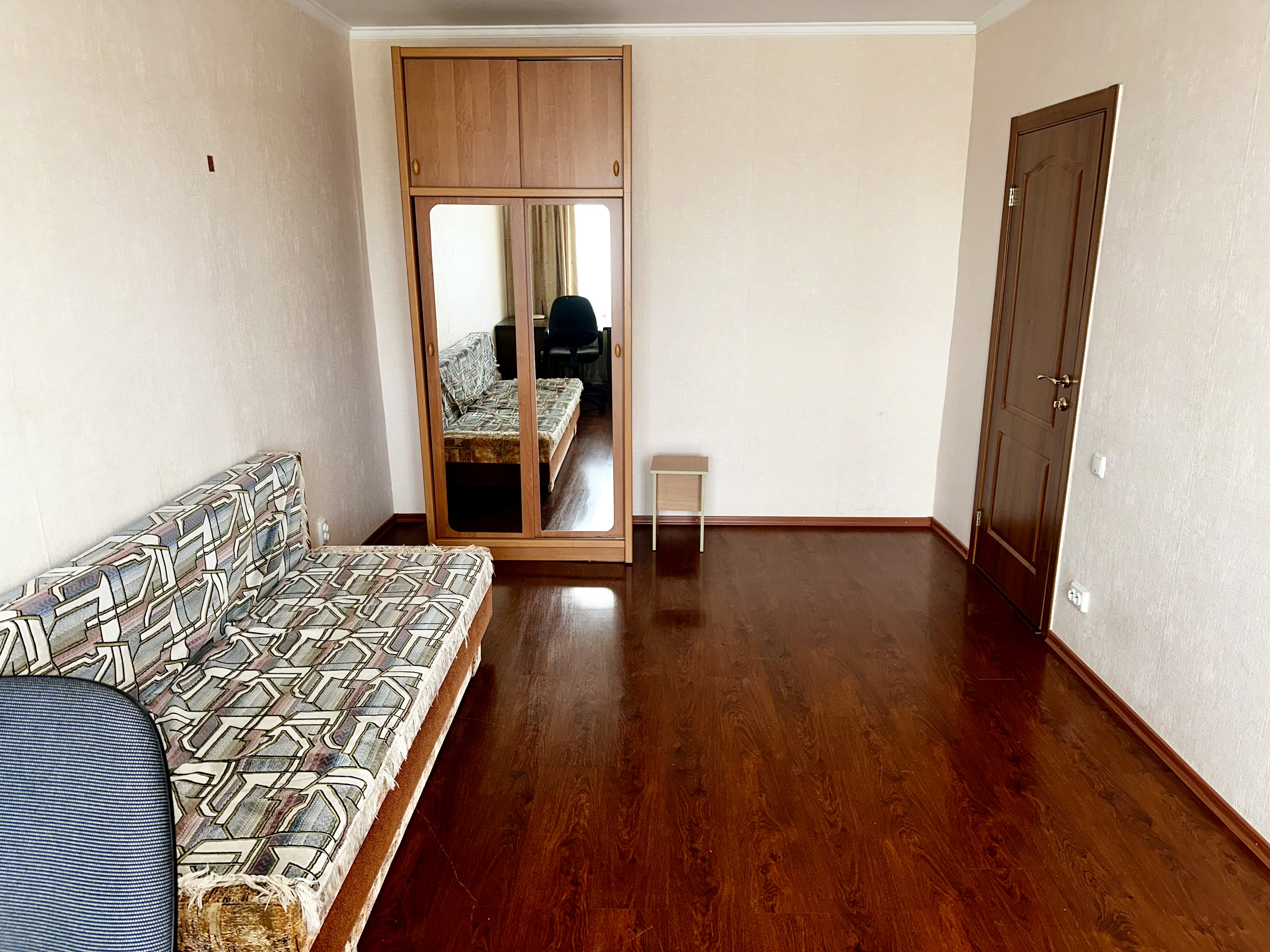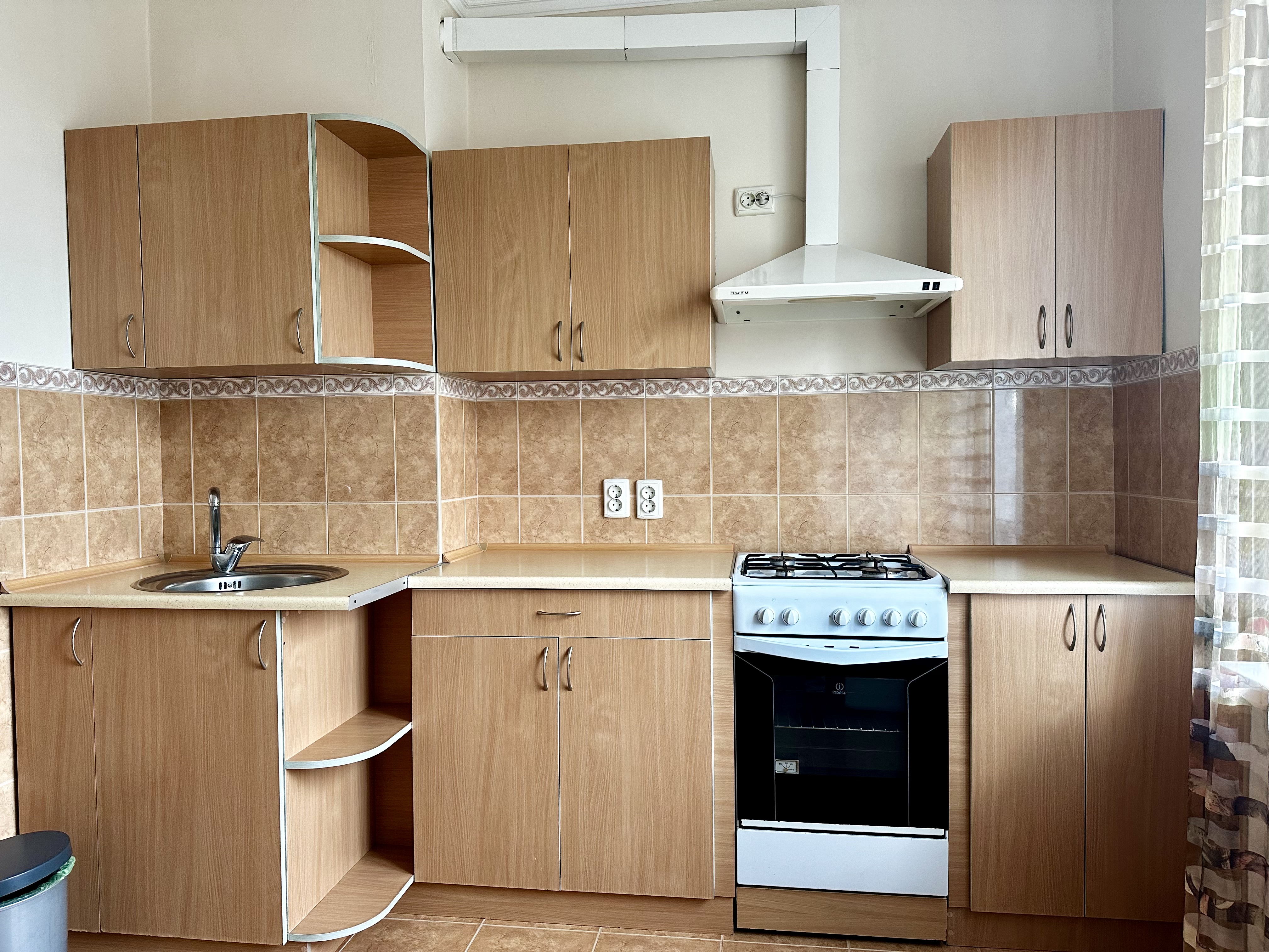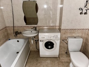 18 м² кімната, кухня 9 м², балкон. Уся необхідна техніка: пральна машина, холодильник, бойлер, кондиціонер.
