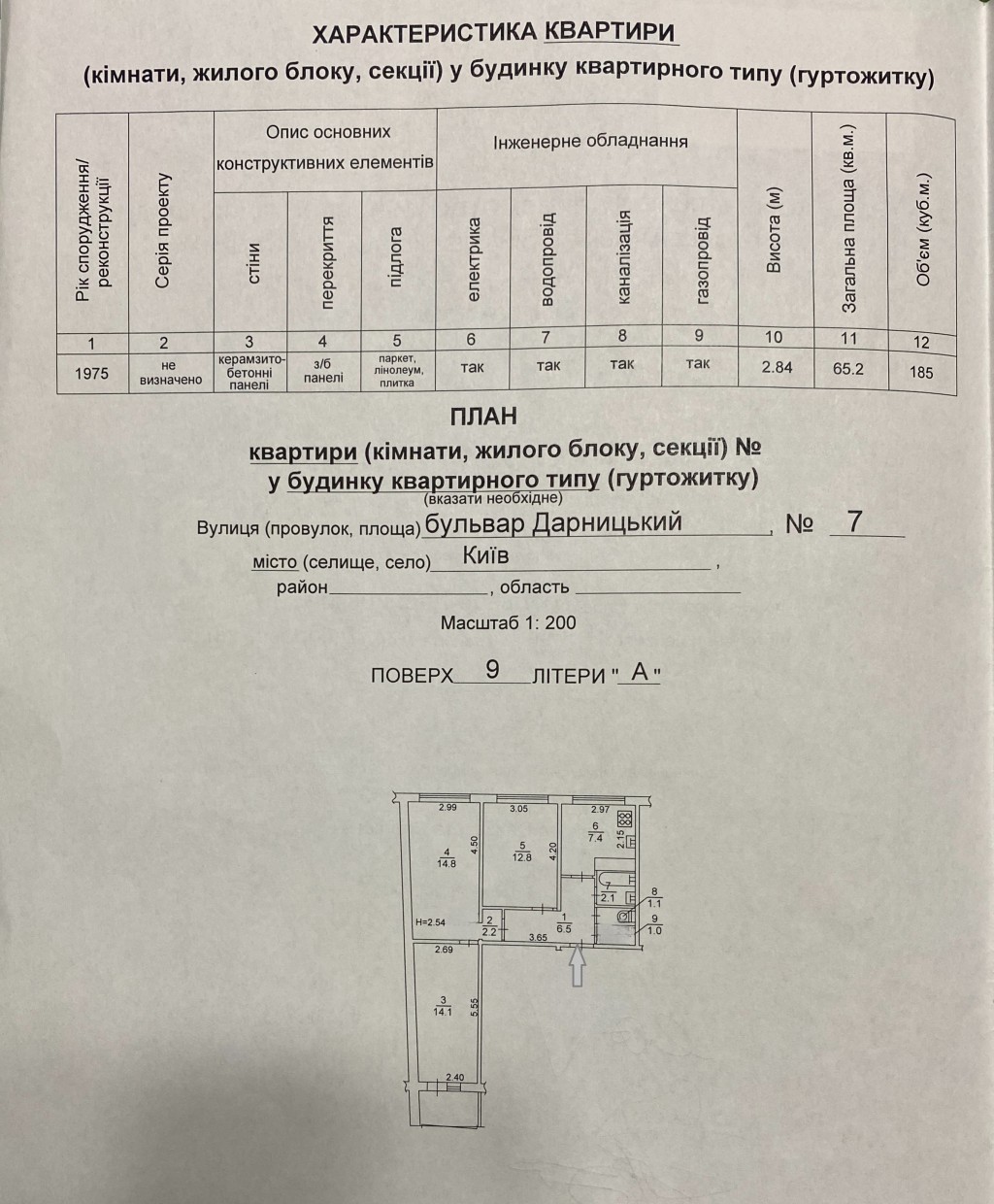 Основні параметри по квартирі: