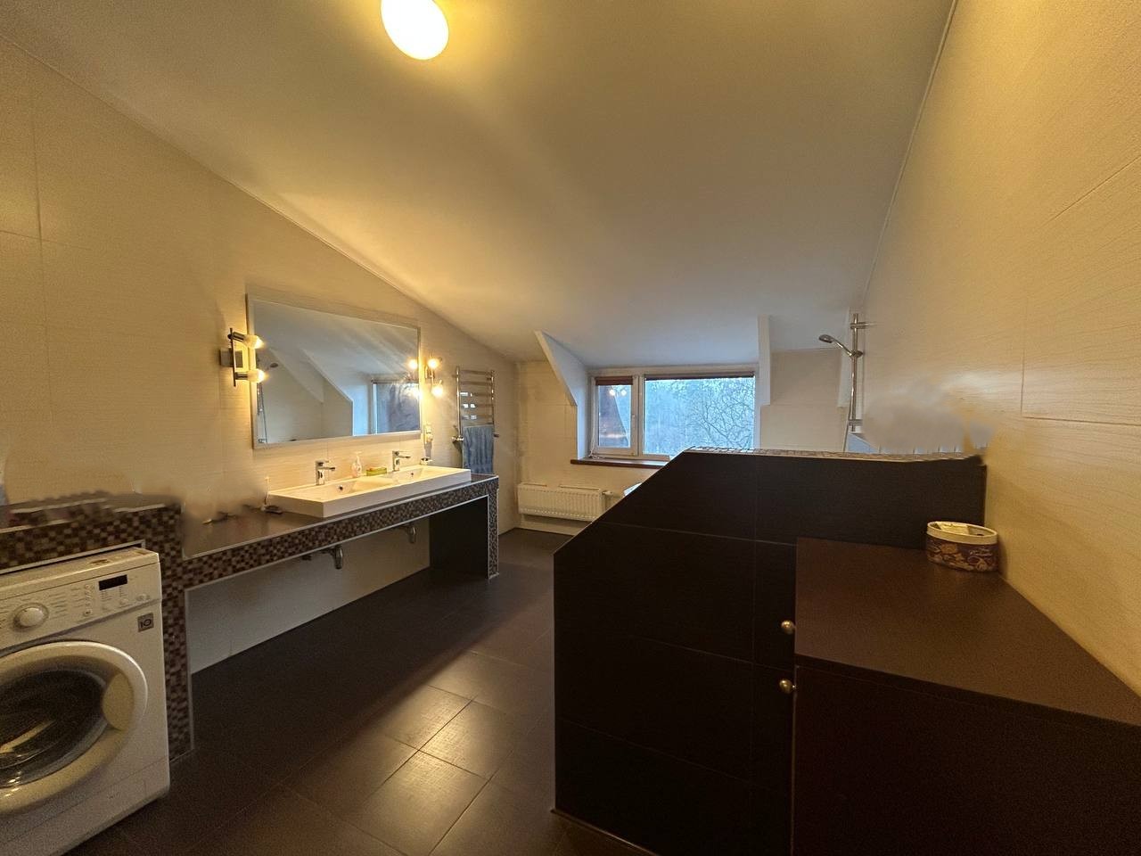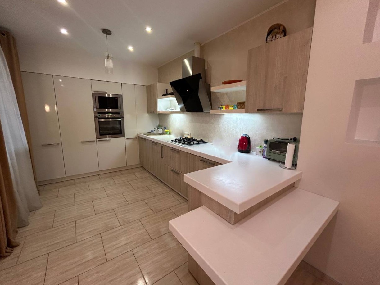ID:568 У продажу чотирикімнатна дворівнева квартира з загальною площею 229м², з ремонтом, технікою та меблями (все залишається). Цегляний будинок на п’ятому поверсі п’ятиповерхового будинку. В будинку є ліфт. Центр Ворзеля, тиха вулиця, закрита територія та доглянутий двір, дитячий майданчик у дворі. Поблизу школа, кав’ярні, дитячі садки, супермаркет і багато іншого. Зручне планування: на першому поверсі коридор, кухня-студія, с/в, вітальня, великий балкон, під сходами комора. На другому поверсі чотири окремі спальні (18,3; 26,3; 18,0; 20,7), с/в, гардероб. Багато вікон - світла та затишна. Ремонт із якісних матеріалів, вбудовані меблі. По всій квартирі розведена тепла підлога. П’ять кондиціонерів, пральна і посудомийна машинки, телевізори, вмонтована мікрохвильова та духова шафи, витяжка, холодильник, бойлер на гарячу воду. Опалення центральне, встановлене безперебійне електроживлення. Мінімальне оформлення (всього 2%). Без комісії для покупця. Під державні програми - так.