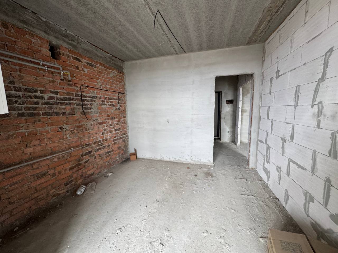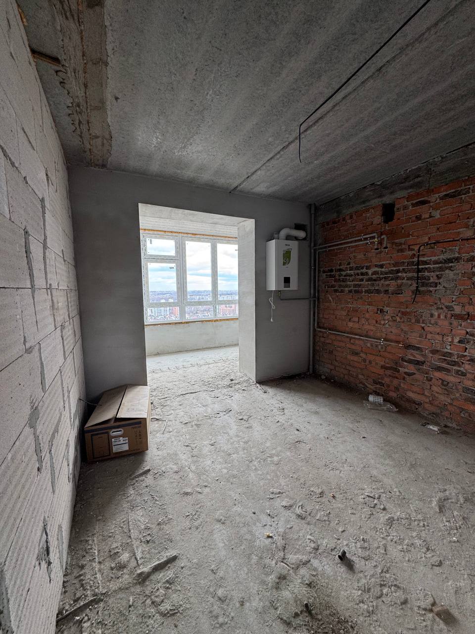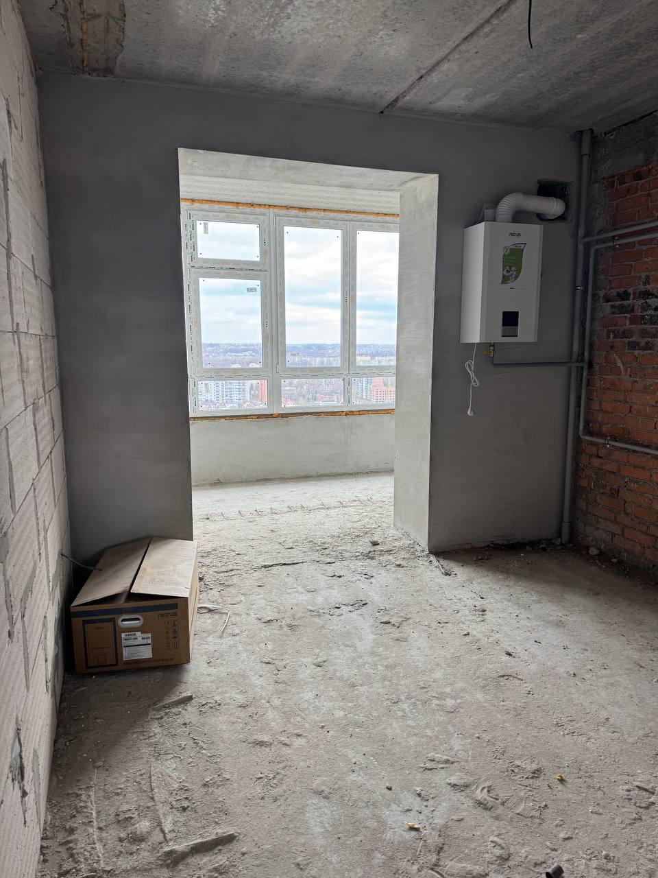 Будинок на етапі здачі. Цегляний будинок з зовнішнім утепленням, квартира не кутова (південна), одностороння, тепла і затишна, з лоджію. Стан після будівельників. На все лічильники, двоконтурний котел. По договору наповнення: вхідні якісні броньовані двері; система опалення – двоконтурний котел; металопластикові вікна, засклення лоджії; розведена електрика; штукатурка цегляних стін. Здача в 2026 році.