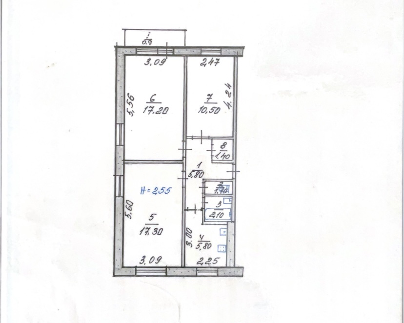 Має три кімнати: 17,30 кв.м., 17,20 кв.м., 10,50 кв.м., всі кімнати окремі, не прохідні.