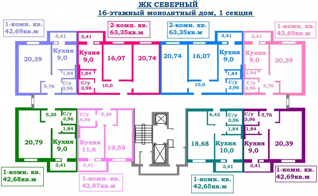 - комнаты — 20,74м и 16,07м,