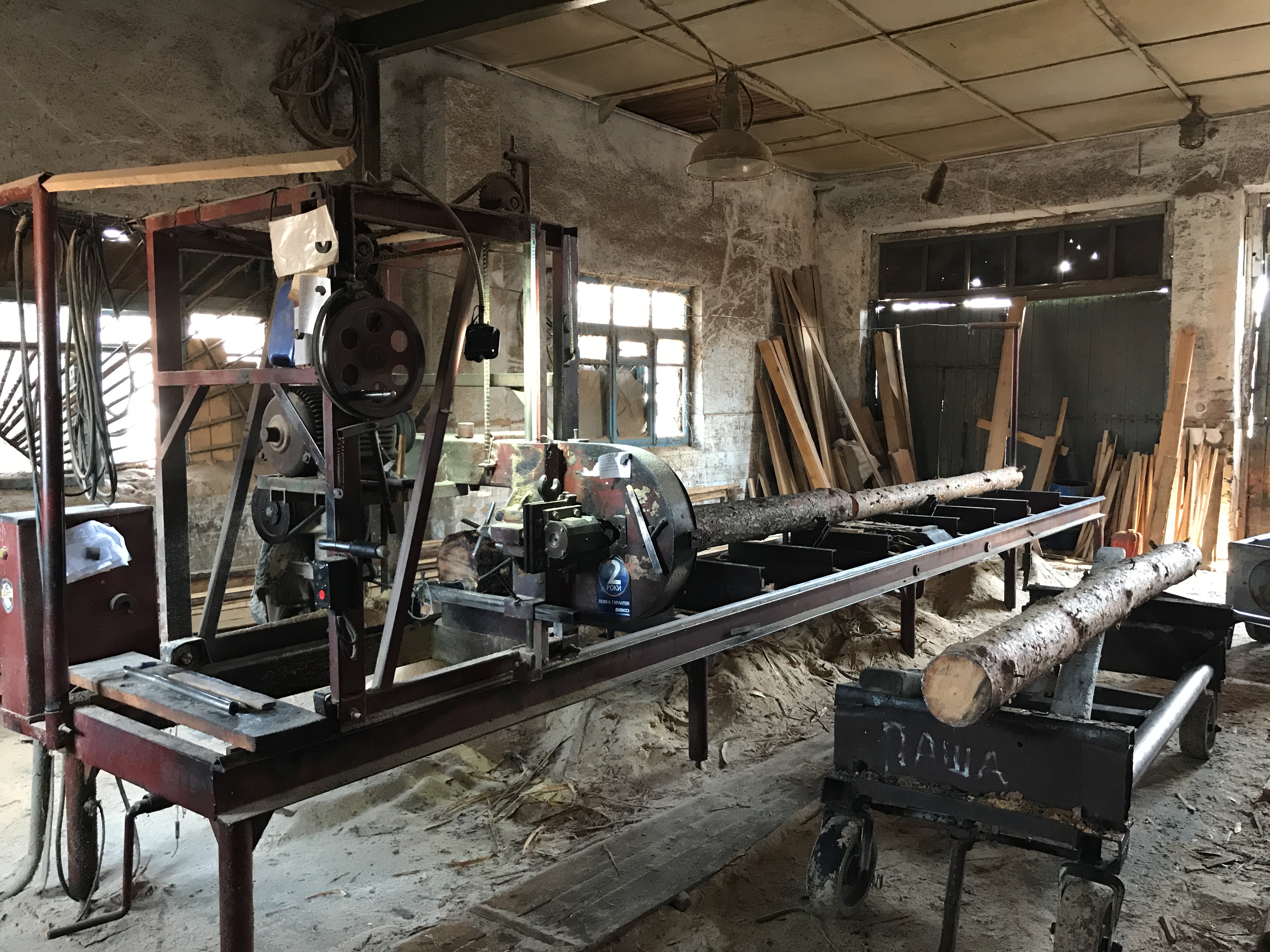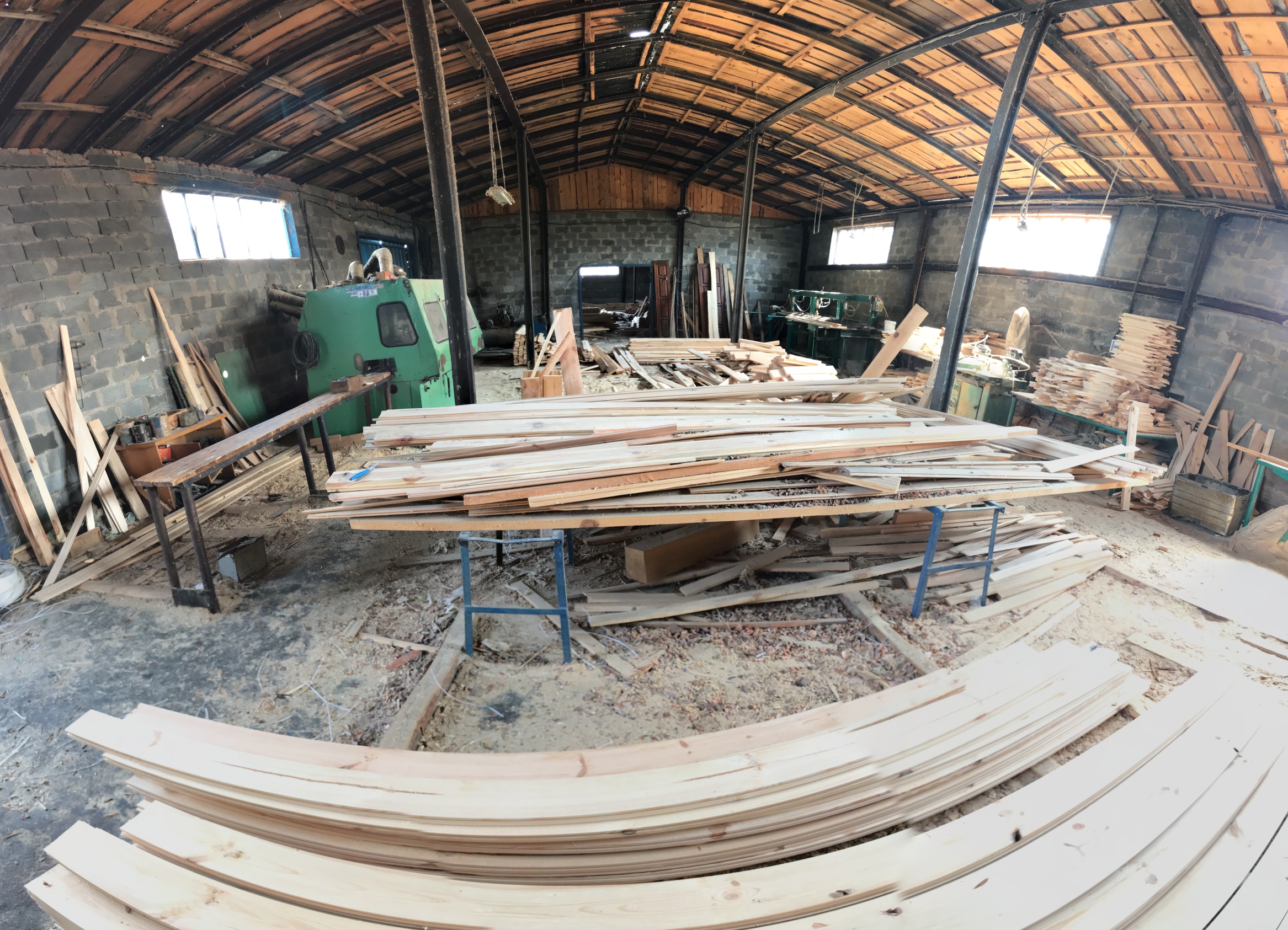 На территории действующая пилорама : вайма для склеивания, станок четырехсторонний (производство вагонки, пола, обналички и т.д), фрезерный станок, торцовочный станок, две пилорамы, две сушильные камеры по 20 кубов каждая.