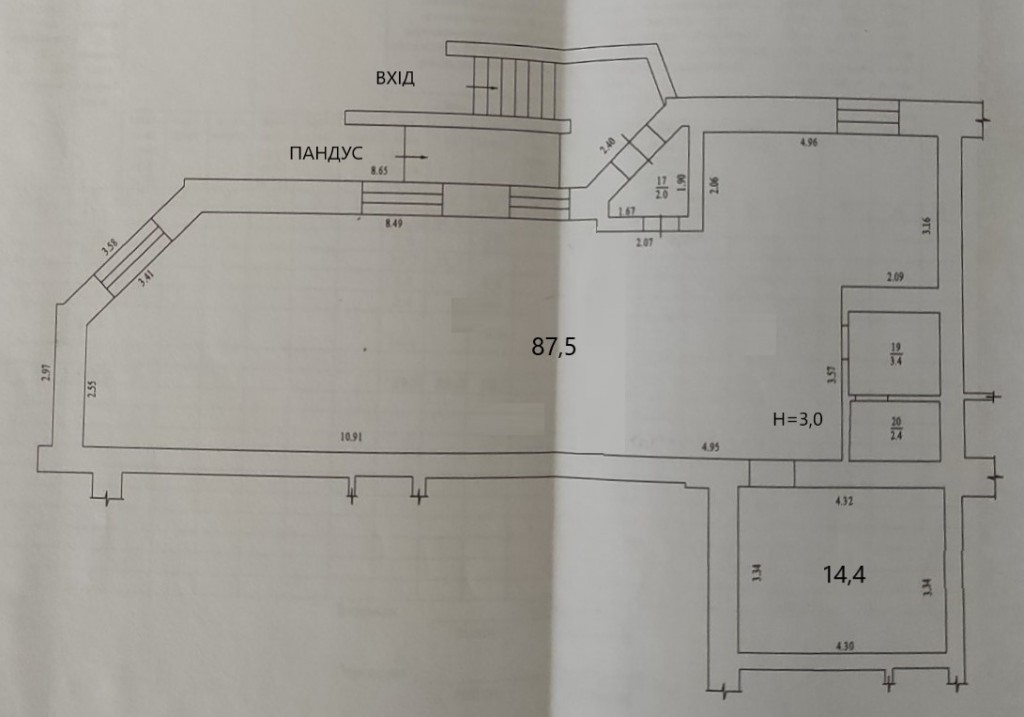 -подсобное помещение (использовалось под хранилище)- 14,4 м2;