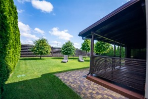 Зеленый участок 3 сотки с капельным авто-поливом, крытая парковка для автомобиля.