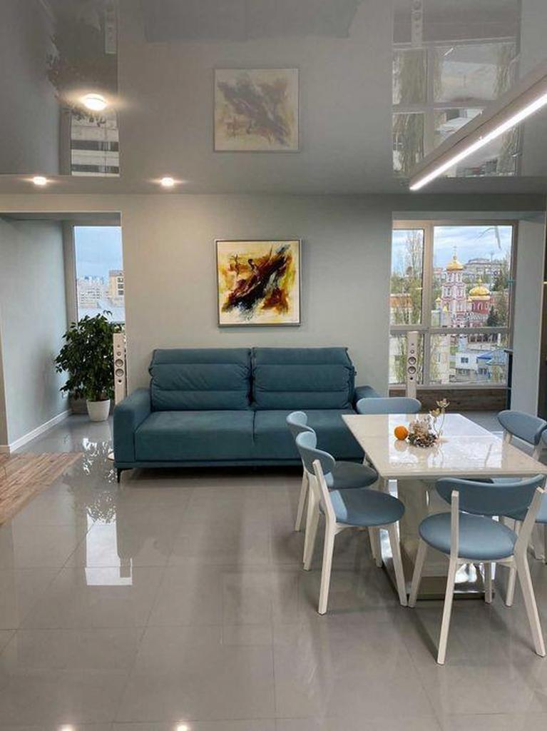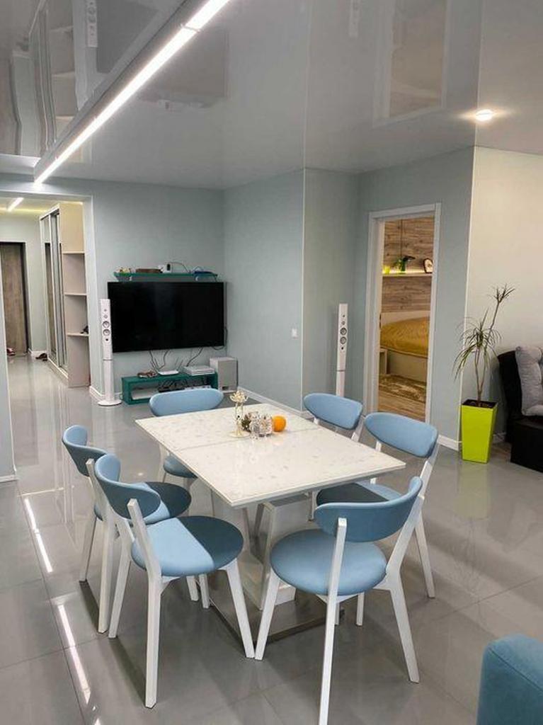 Общая площадь - 77 кв. м.: кухня-студия 20 кв.м., комната 15 кв.м., совмещенный санузел, гардеробная, лоджия.