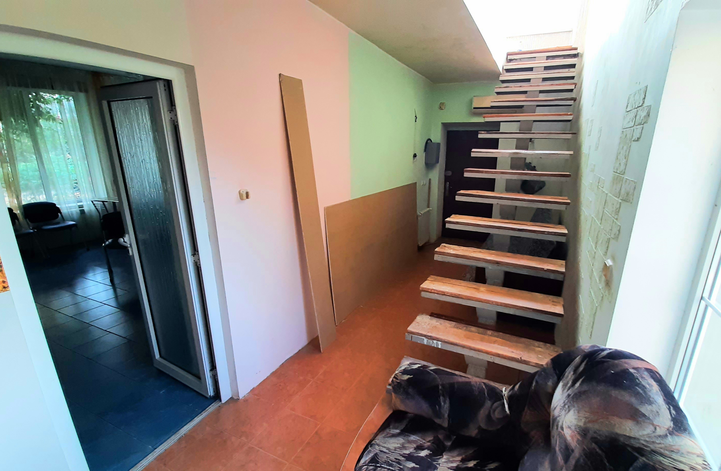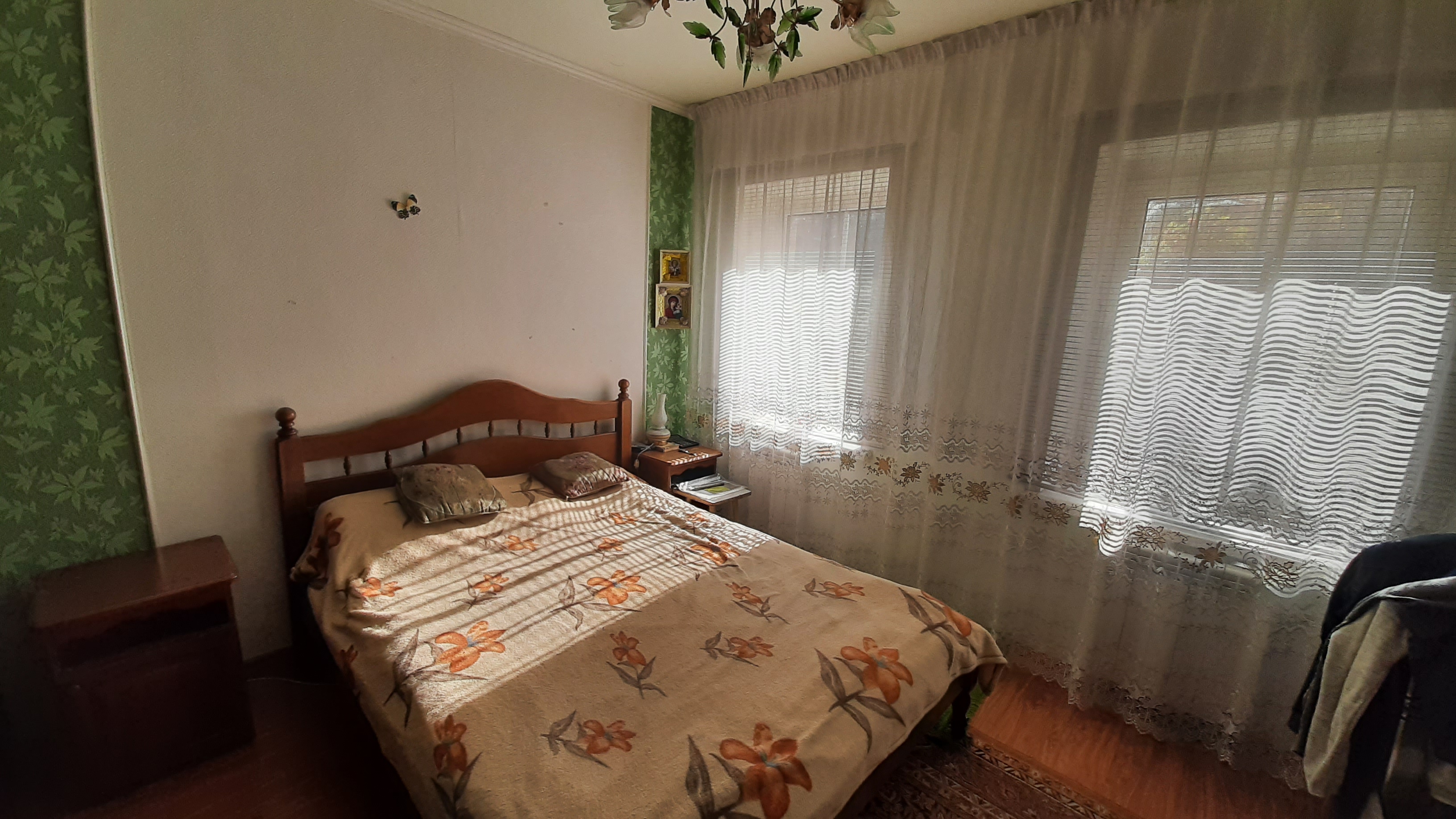 Фасадный участок, площадью пять соток. Ворота для парковки авто под навесом. На территории сад и хоз постройки. В доме пять комнат, четыре раздельные, зал проходной, кухня и ванная комната. Окна МП. Отопление и горячая вода от двухконтурного котла. Крыша металлочерепица. С наружи дом утеплен и оштукатурен. Вход со двора. С фасада есть вход в помещение 30 м2, оборудованное под салон красоты. С санузлом, своей линии электричества, водой и канализацией.