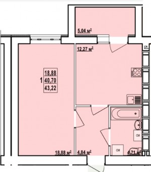 Загальна площа: 43 кв.м