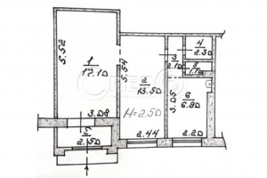 Про об'єкт: - Загальна площа: 45,5кв.м. - Хол. - 2 зали. - Кухня. - Підсобне приміщення. - Санвузол.