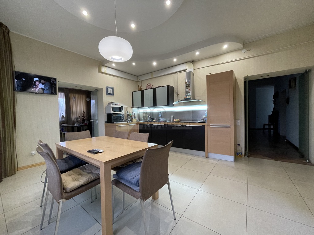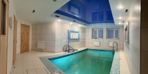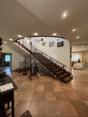 Продам современный дом, построенный по индивидуальному дизайнерскому проекту, с учетом удовлетворения всех потребностей проживания в комфортных условиях. Экологически чистый район, рядом санаторий Рай-Еленовка, грамотно спланированный участок 40 соток. Жилая площадь дома 250 кв.м. + 190 кв.м. вспомогательной площади (тренажёрный зал, банный комплекс с бассейном, биллиардная, винный погреб, котельная, щитовая, комната для персонала). Формат дома, 2 полноценных этажа + цоколь: - цоколь: банный комплекс с бассейном, бильярдная, винный погреб, тех помещения. - 1 этаж - кухня + зонированная столовая 65 кв.м с камином и выходом на террасу, гостевая спальня, 2 с/у. - 2 этаж - 3 полноценных спальни, кабинет, тренажерный зал 2с/у. Участок с озеленением и благоустроенным садом, гараж на 2 автомобиля + большая гостевая парковка, беседка (Зима-Лето), полноценный открытый бассейн 12*4 с глубиной 1,70м - 2,40м с зоной отдыха, две скважины одна с минеральной водой, большой запас э/э, электрогенератор и многое другое. Инфраструктур: 5 км удалённость от города, асфальтированная дорога (круглогодичный подъезд на любом автомобиле), в пешей доступности общественный транспорт.
