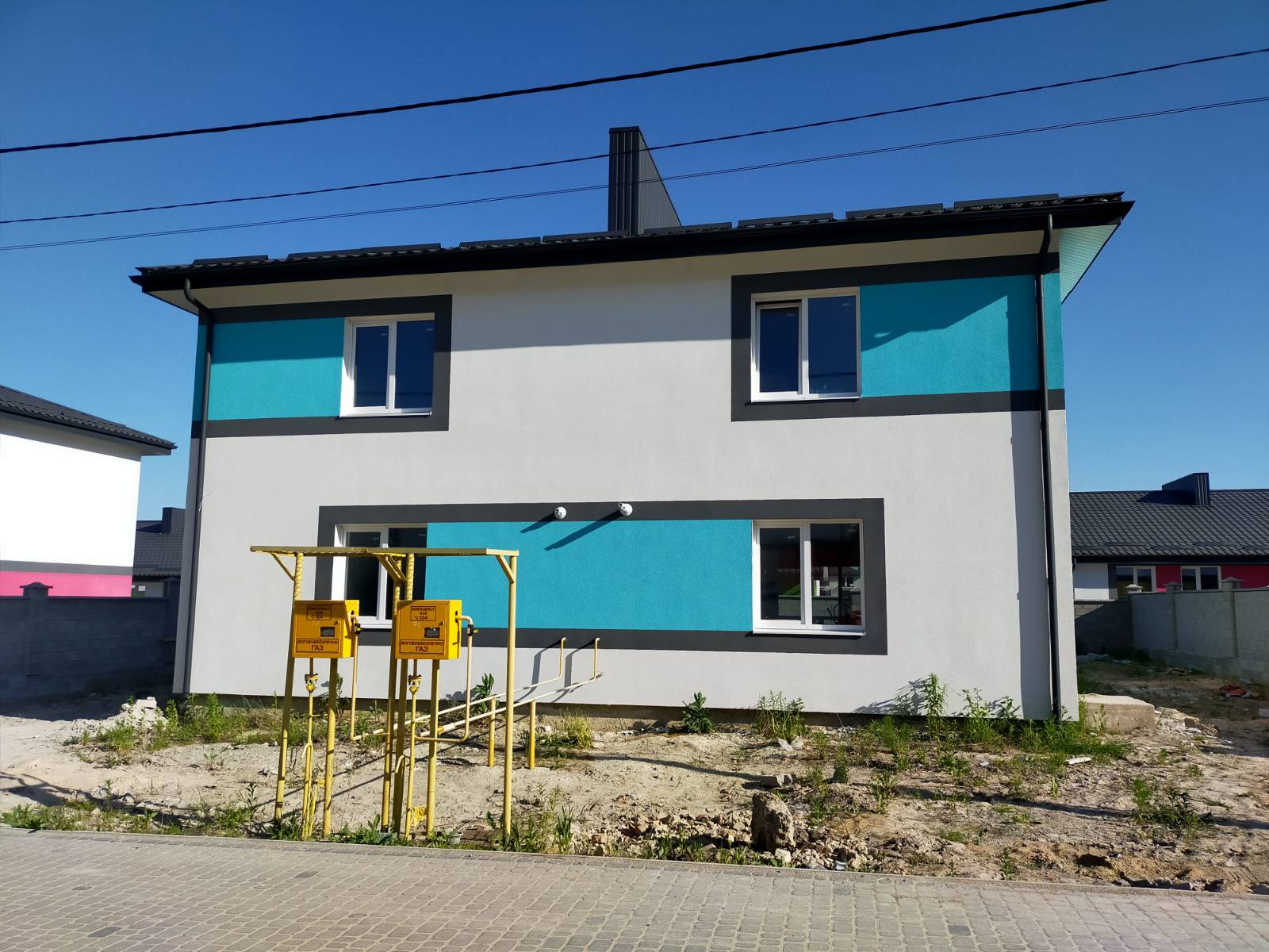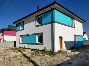 Покрівля з металочерепиці, перекриття монолітне Енергозберігаючі вікна від Epsilon Поштукатурено розведена електрика вода опалення зроблена інсталяція котел газовий двоконтурний Vailant теплі підлоги по всьому будинку