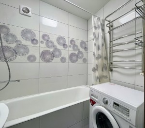 Меблирована. Две застекленные лоджии. На кухне встроенная мебель с бытовой техникой. Ремонт в светлых тонах. Установлен кондиционер. Санузел раздельный. В ванной бойлер на 80 л. Стиральная машина автомат.