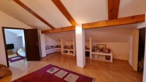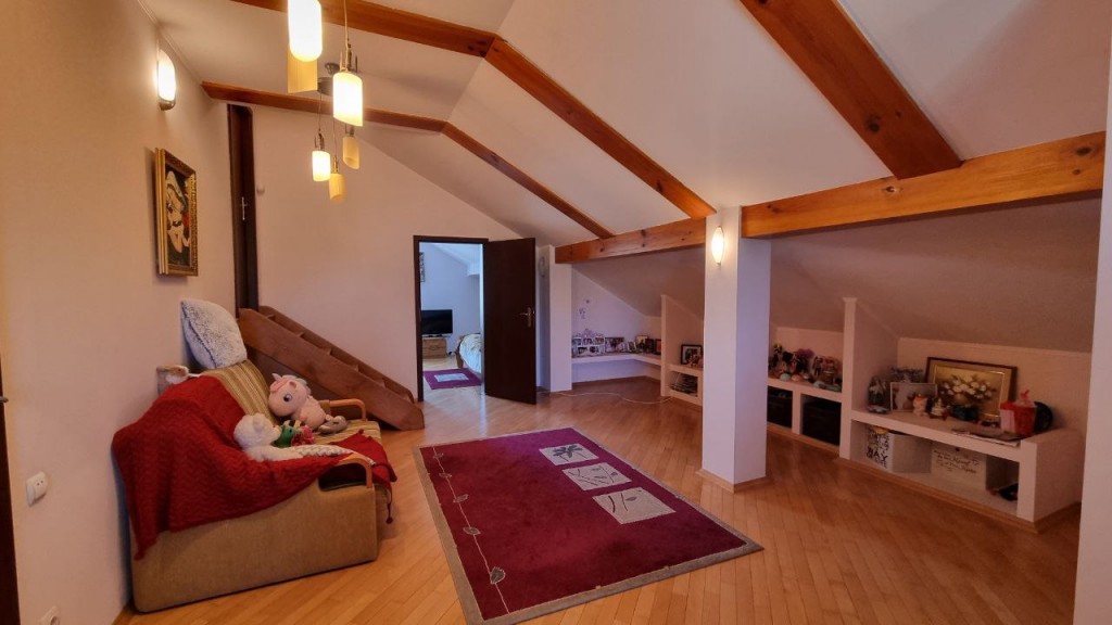 По плануванню двоповерховий, і має цокольний поверх для господарських потреб На першому поверсі : коридор, кухня, вітальня, дві спальні, ванна кімната На другому поверсі: Дві кімнати і ще доволі місця для облаштування ще кімнат при потребі. На цокольному поверсі Гараж площею 43м, технічна кімната, більярдна, душова кімната