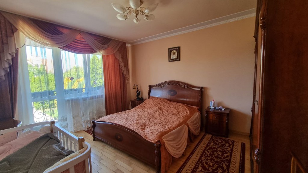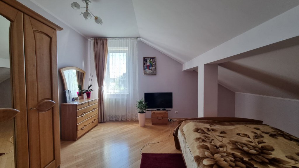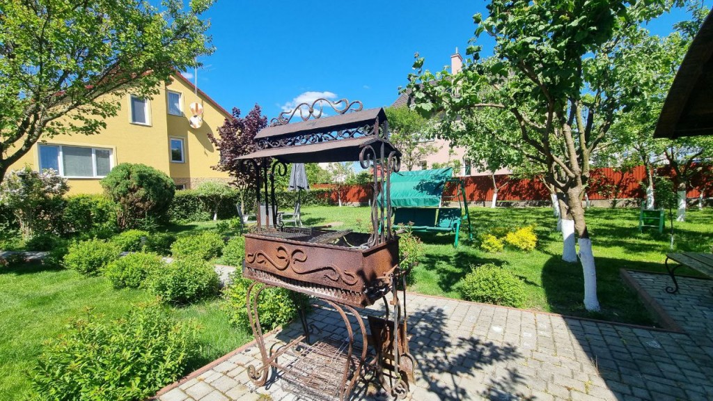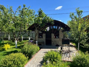 Асфальтовий доїзд до самого будинку, закрита на шлагбаум вулиця. Чарівне подвір'я, площею 13 сотих, обсаджене неймовірної краси багаторічними туями, має альтанку, просторий сад, качелю , мангал, та зону для сімейного відпочинку.