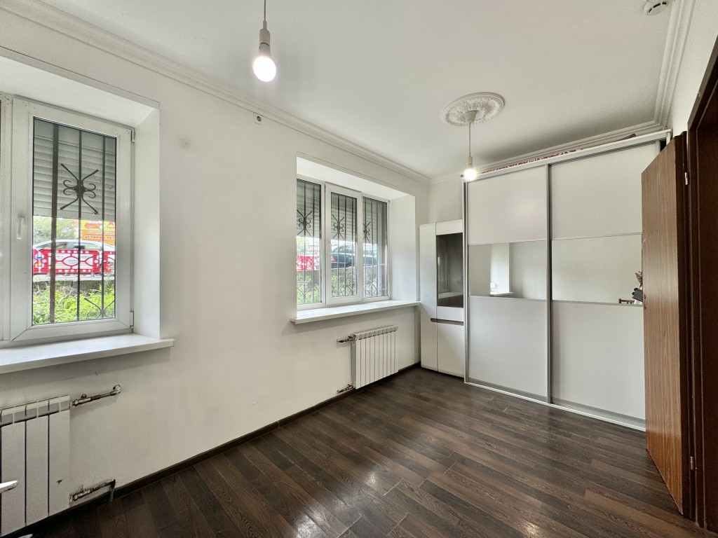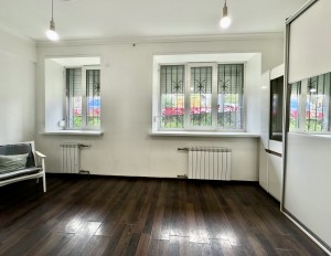 - Цокольний поверх з окремим входом; - Фасадне розташування, великі вікна на фасад та у двір; - Площа приміщення 53кв.м: три кімнати, санвузол, міні-кухня, хол; - Надійний захист: **решітки, ролети, подвійні металеві двері**, охоронна сигналізація.