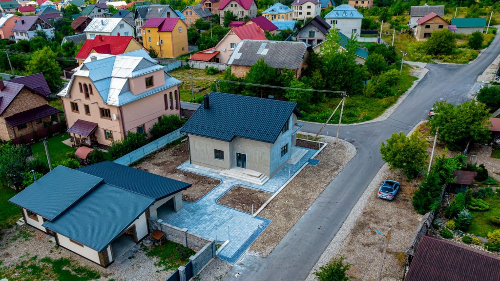 Подвір'я з бруківкою, є можливість проявити творчість як у будинку, так і на ділянці.